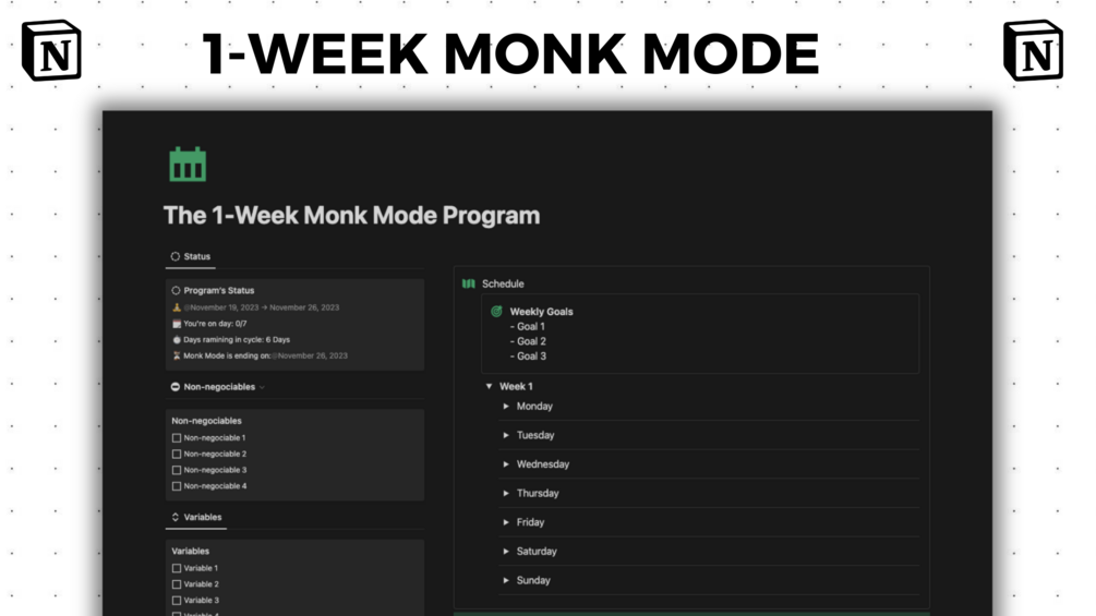 - Who is the Monk Mode for?Monk Mode template is for anyone looking to improve their existing Monk Mode cycles and for those just getting starting with it.